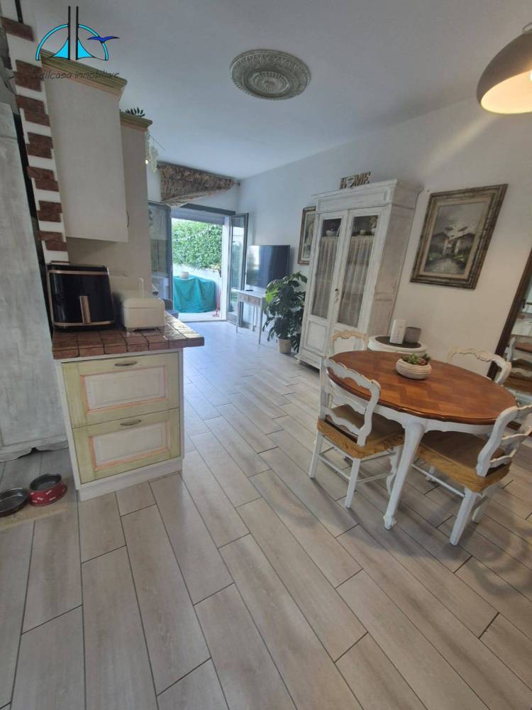 L'immobile si sviluppa su due livelli, al piano terra troviamo: ampio e luminoso salone con cucina a vista ed accesso poi al giardino di pertinenza, locale lavanderia-ripostiglio e bagno.
