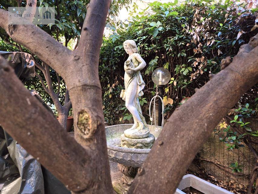 Proseguendo nell'ampio disimpegno, sfruttabile come ripostiglio, incontriamo il bagno con vasca e doccia e le due camere da letto, che affacciano entrambe sul fiabesco giardino privato, il quale gode di una piacevole privacy ed ha una metratura da consentire la predisposizione di una zona giorno all'aria aperta in cui trascorrere la maggior parte dell'anno.