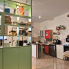 L'ingresso all'abitazione è indipendente e senza barriere architettoniche, nonostante faccia parte di una piccola palazzina, ed il portoncino blindato apre direttamente sull'ampia zona giorno suddivisa tra sala relax e sala da pranzo, con cucina a vista.