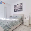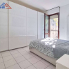 Un disimpegno elegante separa la zona living dalla zona notte, dove trovi due camere ampie, entrambe con accesso diretto alla seconda corte privata, ideale per chi desidera intimità e tranquillità.