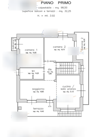 I locali sono i seguenti: soggiorno, cucina/pranzo, w.c., disimpegno, e due camere da letto oltre a due balconi che misurano in totale mq. 17.85 ed un terrazzo.