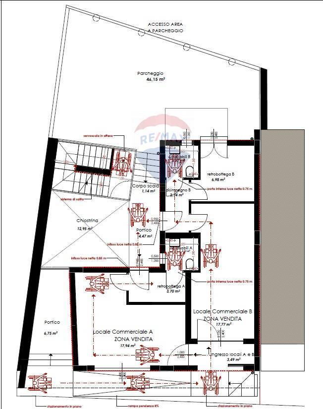 La posizione al piano terra e la presenza di una grande vetrina rendono questo locale molto visibile e quindi adatto per attività commerciali che necessitano di una buona esposizione.
