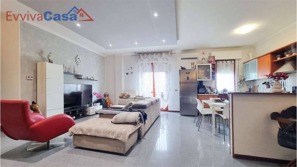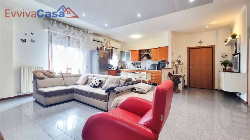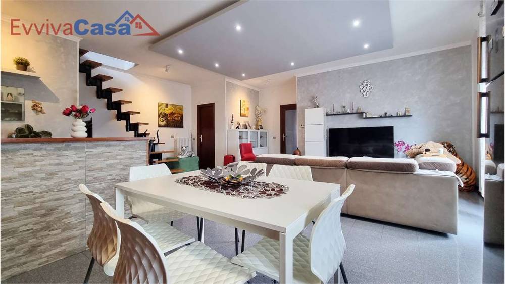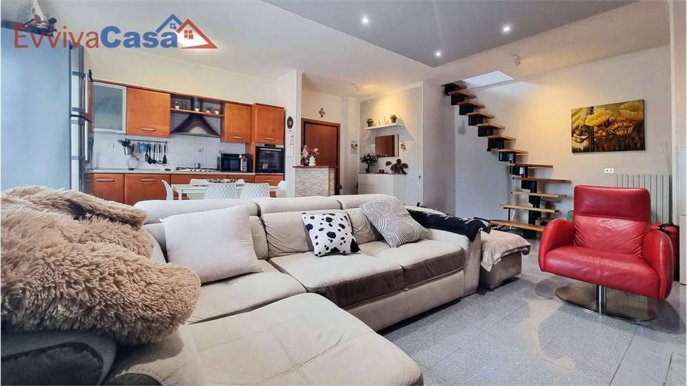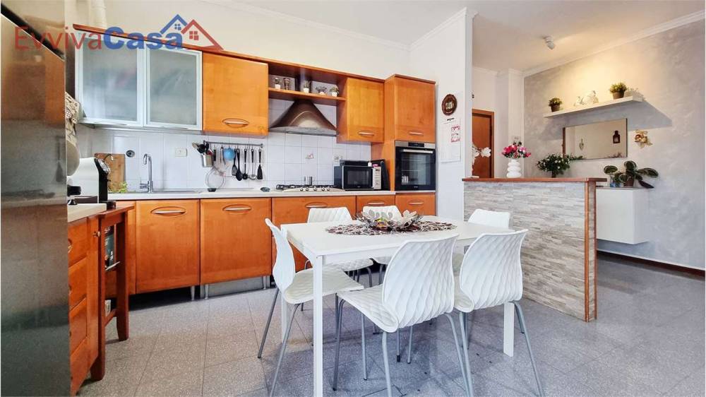 L'appartamento si apre su un grande salone con cucina a vista, un ambiente moderno e accogliente, perfetto per vivere la casa in modo conviviale e funzionale.