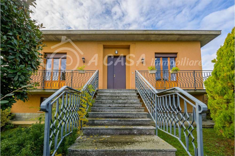 La villa posta in zona collinare ed immersa nel verde si predispone con ingresso, ampio salone con affaccio sul balcone, cucina abitabile anch'essa con sfogo esterno, la zona notte è distribuita con tre camere da letto matrimoniali e il bagno, tramite scala interna accediamo ai due ampi locali cantina con annesso il triplo garage dove abbiamo accesso al locale tecnico/lavanderia.