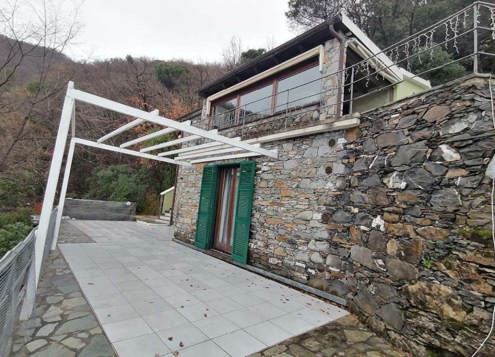 Villino situato a Zoagli (GE), Loc. Vallette, con vista sul Golfo di Rapallo e Portofino è sviluppato su due piani fuori terra e uno interrato dove troviamo una lavanderia e la caldaia, di pertinenza un'area esterna destinata a giardino con area barbecue e piscina. L' abitazione internamente si compone di ingresso, un soggiorno con angolo cottura e zona pranzo, un bagno, mentre al piano terra sono ubicate due camere, due bagni, un disimpegno, una cabina armadio e un ripostiglio.