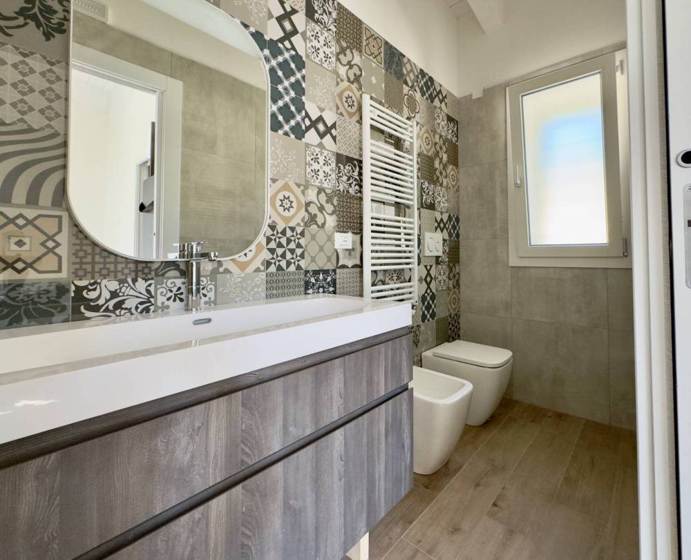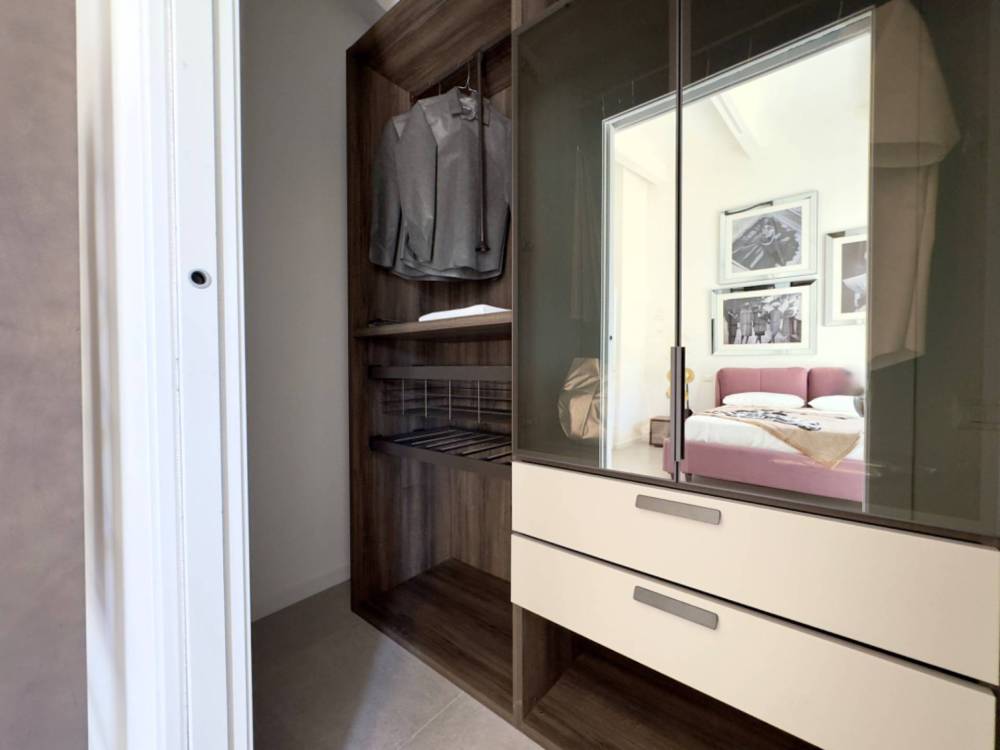 Lingresso si apre sulla zona living di 40 mq con cucina abitabile e una camera da letto con la predisposizione per un servizio ideale come ambiente di lavoro o per creare una camera indipendente per la privacy degli ospiti; la zona notte ha un bagno principale, 2 camere da letto ci cui una di circa 20 mq e l'altra con all'interno la sua cabina armadio e bagno privato.