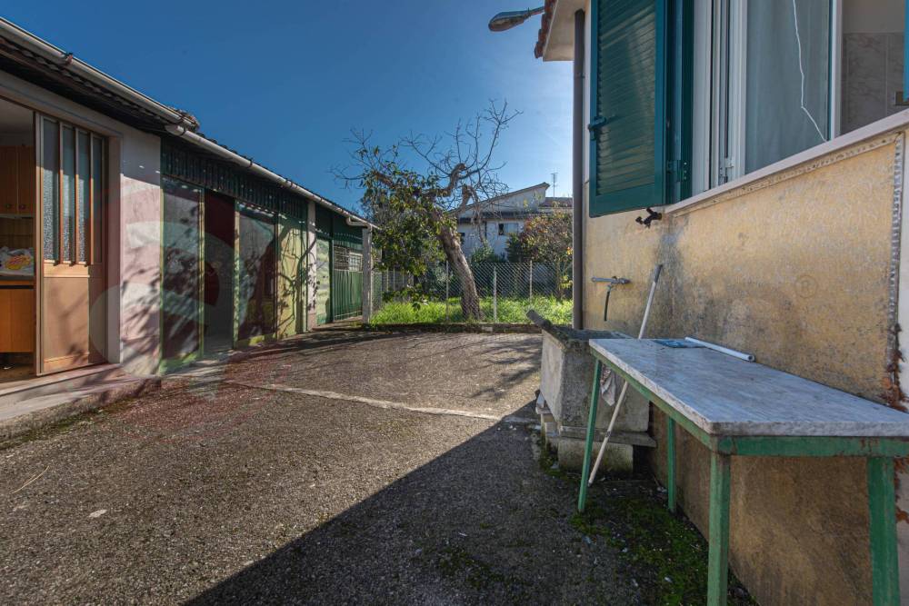 Allesterno, la casa è completamente recintata e valorizzata da un bel portico con affaccio sul giardino, in parte pavimentato e in parte ornamentale, un piccolo angolo di pace dove vivere il piacere dellaria aperta in ogni stagione.