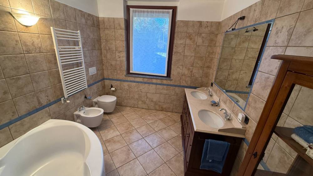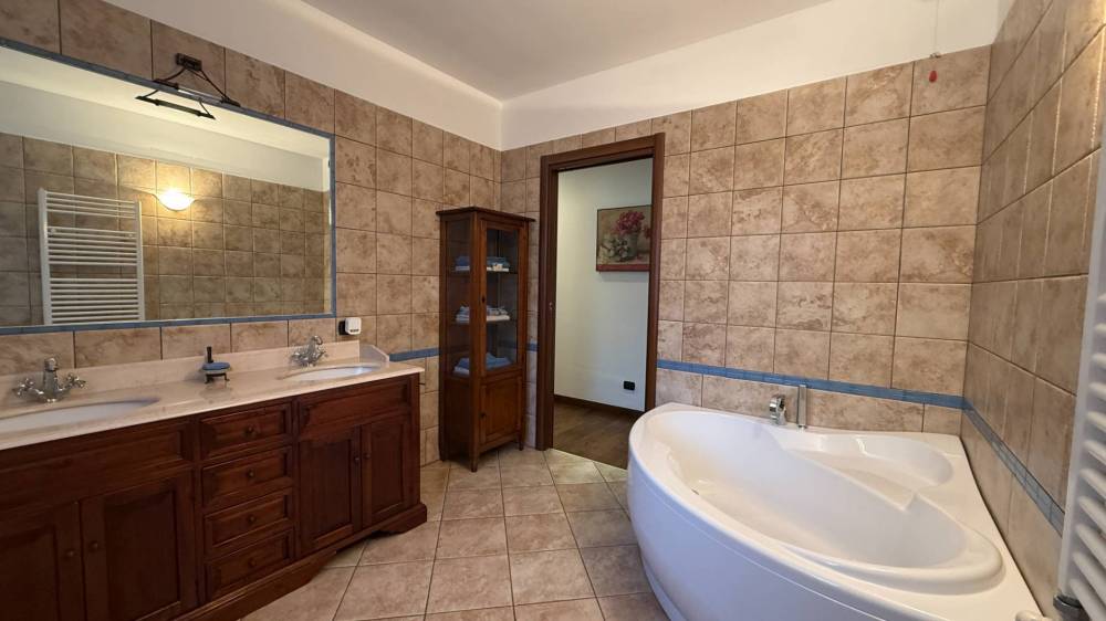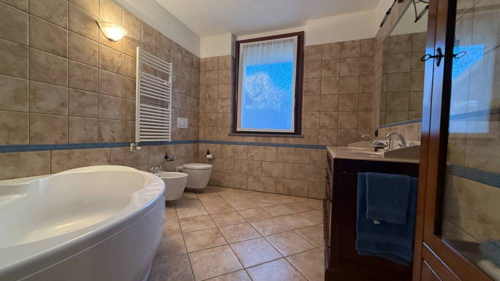La spaziosa taverna, dotata di stufa a pellet e di un ulteriore bagno, offre un ambiente accogliente e versatile. Completano la proprietà un box doppio molto ampio, un giardino con irrigazione automatica e un sistema antifurto perimetrale e volumetrico.