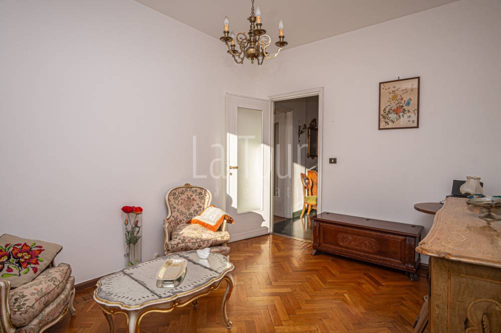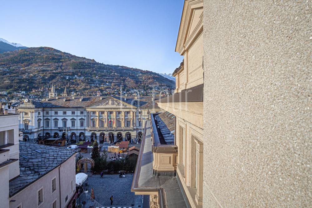 Nel cuore del centro storico, all’interno di un elegante palazzo d’epoca, proponiamo un ampio e prestigioso appartamento che, grazie alla posizione elevata e alla sua collocazione privilegiata, offre uno scorcio suggestivo su Piazza Chanoux e una piacevole apertura visiva verso il profilo montano. L’unità abitativa, posta al quinto piano e servita da ascensore, si sviluppa su due fronti liberi est-ovest, assicurando un’illuminazione naturale particolarmente gradevole nelle ore pomeridiane. La distribuzione interna prevede un raffinato disimpegno d’ingresso pavimentato in marmo, corredato da un comodo ripostiglio. Sul fronte ovest si articolano la camera matrimoniale con armadiature in stile veneziano e due eleganti sale di ampia metratura, una delle quali dotata di balcone affacciato sul centro storico. Il lato est ospita invece un vano dispensa, una cucina abitabile, il bagno e un secondo balcone, arricchito da veranda e ulteriore ripostiglio. Completano la proprietà una soffitta ubicata al piano sottotetto e una cantina al livello interrato. Grazie alla posizione di pregio, alla vicinanza a ogni tipo di servizio, collegamento e alla collocazione all’interno di un palazzo storico, questo appartamento rappresenta un’opportunità rara: una residenza esclusiva, pensata per chi desidera vivere il centro storico con il massimo livello di eleganza e qualità abitativa.