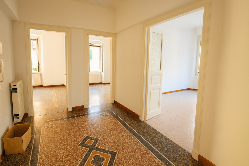 Rapallo, rif. FA05, in posizione centrale e pianeggiante, si affitta per lungo periodo appartamento vuoto in Villa d'epoca trifamiliare. L'alloggio posto al primo piano senza ascensore, è composto da ampio ingresso, soggiorno con affaccio sul balcone, tre camere da letto, 2 bagni con doccia, cucina, cantina e posto auto scoperto. L'appartamento oggetto di recente ristrutturazione è predisposto per l'installazione di split e motore aria condizionata. Richiesta Euro 1.000 affitto mensile + 50 mensili spese condominiali. Si affitta solo a persone referenziate, con redditi documentabili ed idonei a sostenere l'importo dell'affitto.