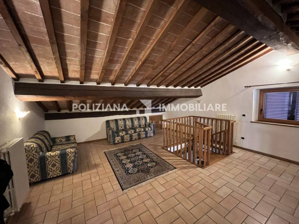 L’immobile, di ampia metratura (circa 290 m² complessivi), si sviluppa su più livelli e conserva il fascino autentico dell’architettura toscana: soffitti con travi a vista, pavimenti in cotto antico e grandi finestre che regalano ambienti luminosi e ariosi.