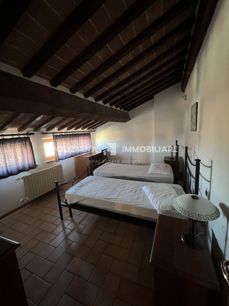 La distribuzione interna comprende una spaziosa zona giorno con camino, cucina abitabile, diverse camere e bagni, oltre a locali accessori nei piani sottostanti. Gli spazi e l’atmosfera lo rendono ideale sia come abitazione principale di rappresentanza, sia come residenza di charme o struttura ricettiva nel cuore di Montepulciano.