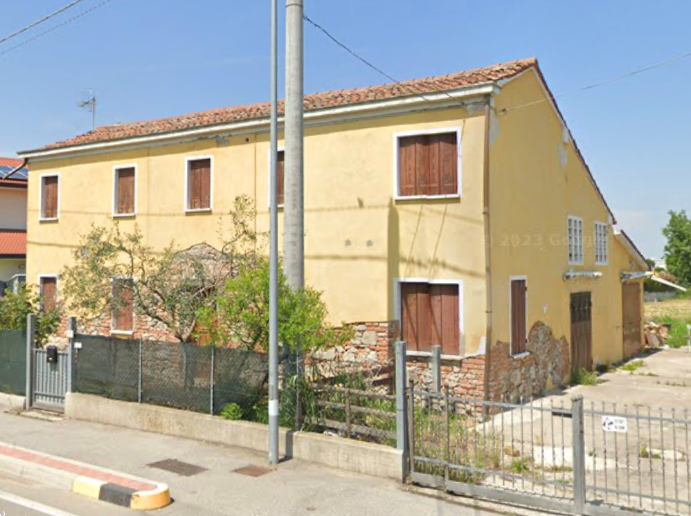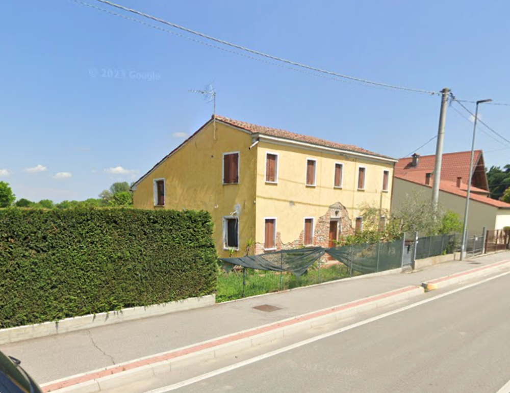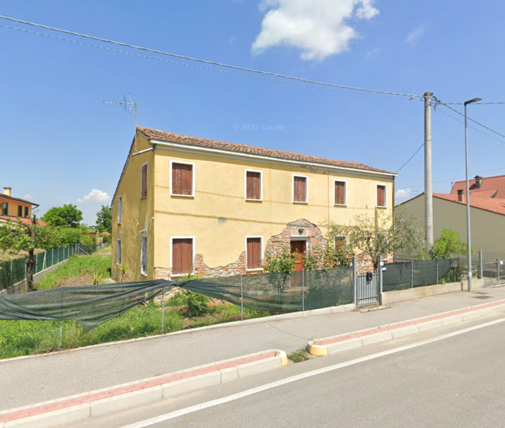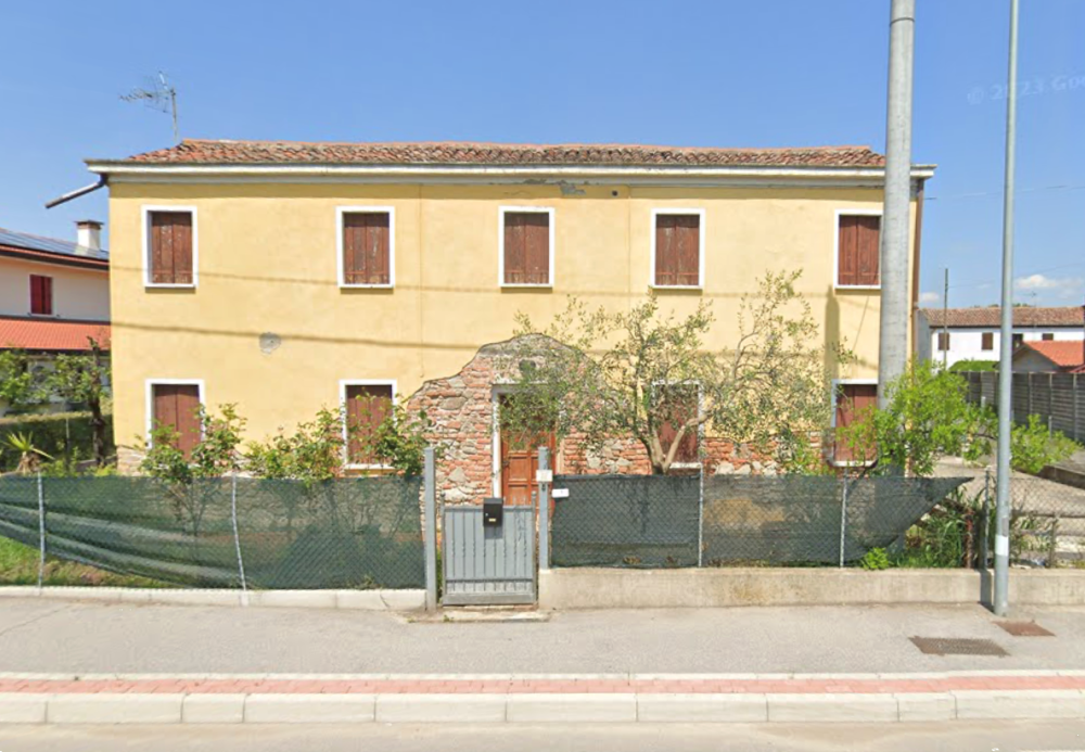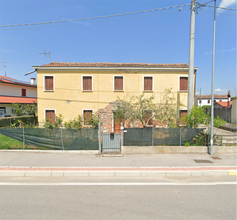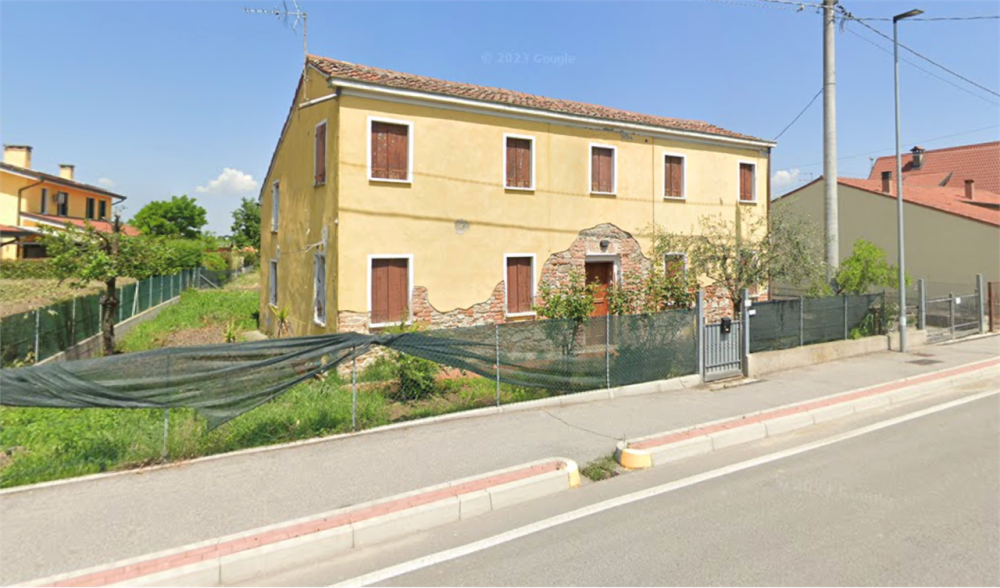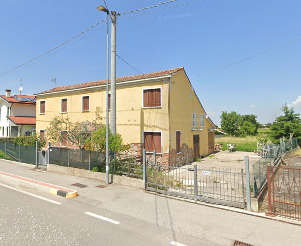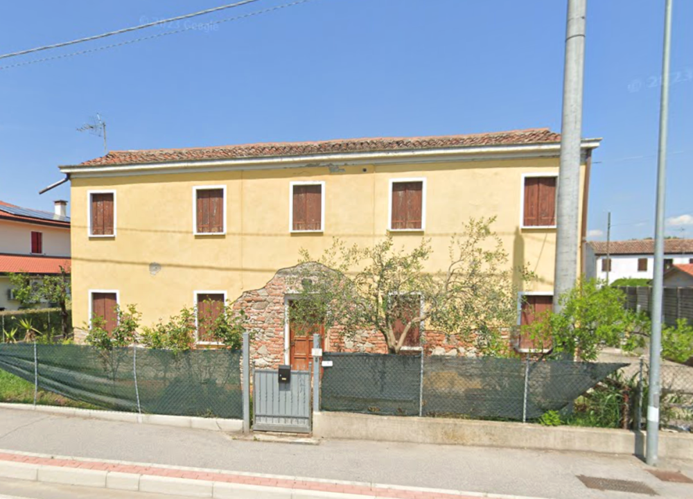 Casa singola su due livelli dotato di due ricoveri attrezzi al piano terra, in parte al grezzo e di soffitta al grezzo al piano primo, insistente su un'area coperta e scoperta esclusiva di catastali 570 metri quadri, situata in Comune di Tribano (PD) in via Mazzini. Abitazione composta al piano terra da un ingresso, un soggiorno, sala da pranzo, una cucina, cantina ed un bagno; al piano primo da due camere da letto e soffitta.