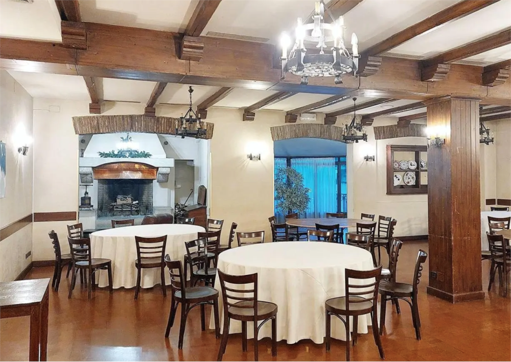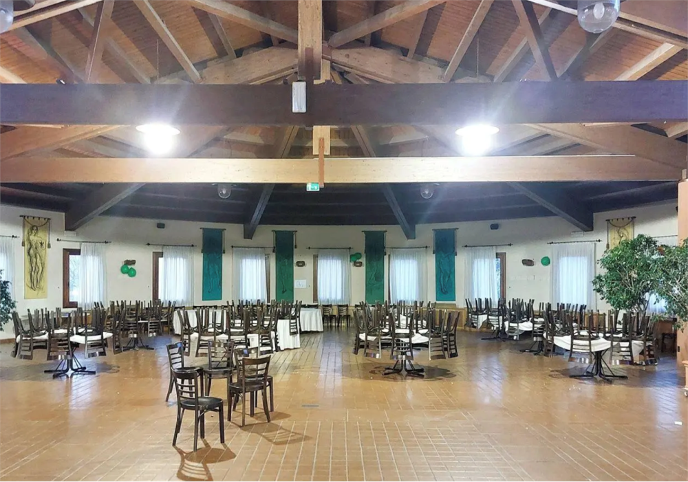 Ristorante arredato, pertinenze e avviamento situato a Verucchio (RN), località Villa Verucchio in via Casale, composto da ristorante, bar/gelateria, macelleria, due appartamenti, aree urbane e cortile. Condizioni da molto buone a ottimo, inclusi avviamento aziendale e beni mobili.