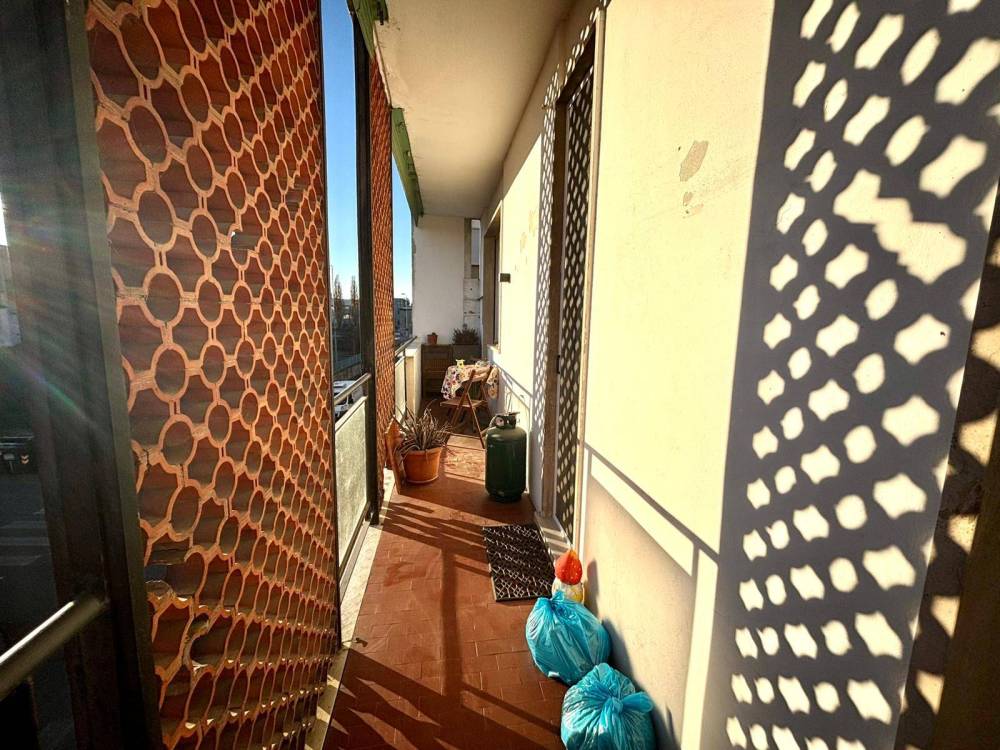 Ingresso su ampio corridoio, salone grande con uscita diretta su ampio balcone, cucina abitabile anch'essa con uscita diretta sul balcone, 2 camere da letto ampie (di cui una matrimoniale con balcone privato), bagno finestrato.
