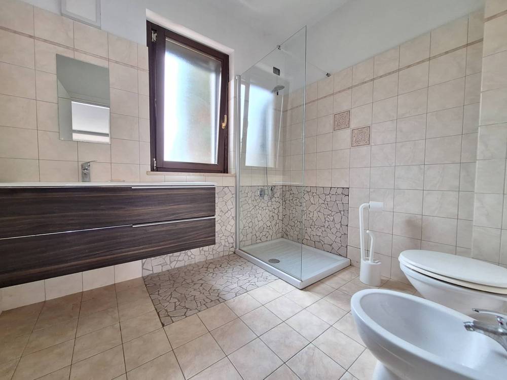 L'appartamento, si sviluppa su due livelli, il primo, situato al piano terra rialzato, di 68 mq, dispone di ingresso autonomo, composto da ampio soggiorno, una camera matrimoniale con accesso al terrazzo ed al giardino lato est, un ampio bagno con doccia, finestrato.