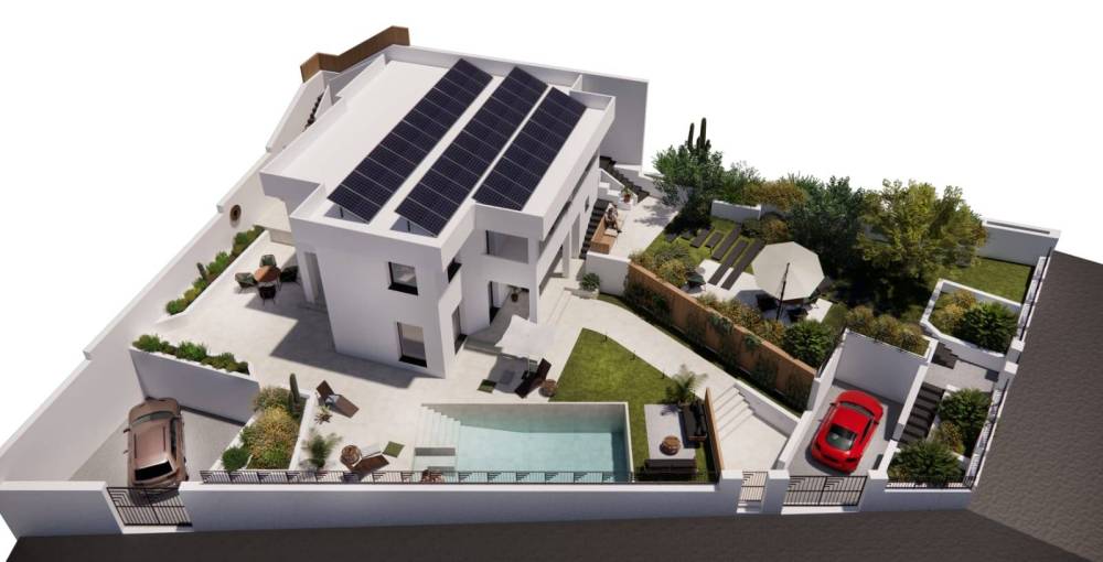 Ogni ambiente è climatizzato e servito da un impianto di riscaldamento/raffrescamento a pavimento autonomo alimentato da pannelli fotovoltaici con batterie daccumulo, per vivere in totale comfort durante tutto l'anno.