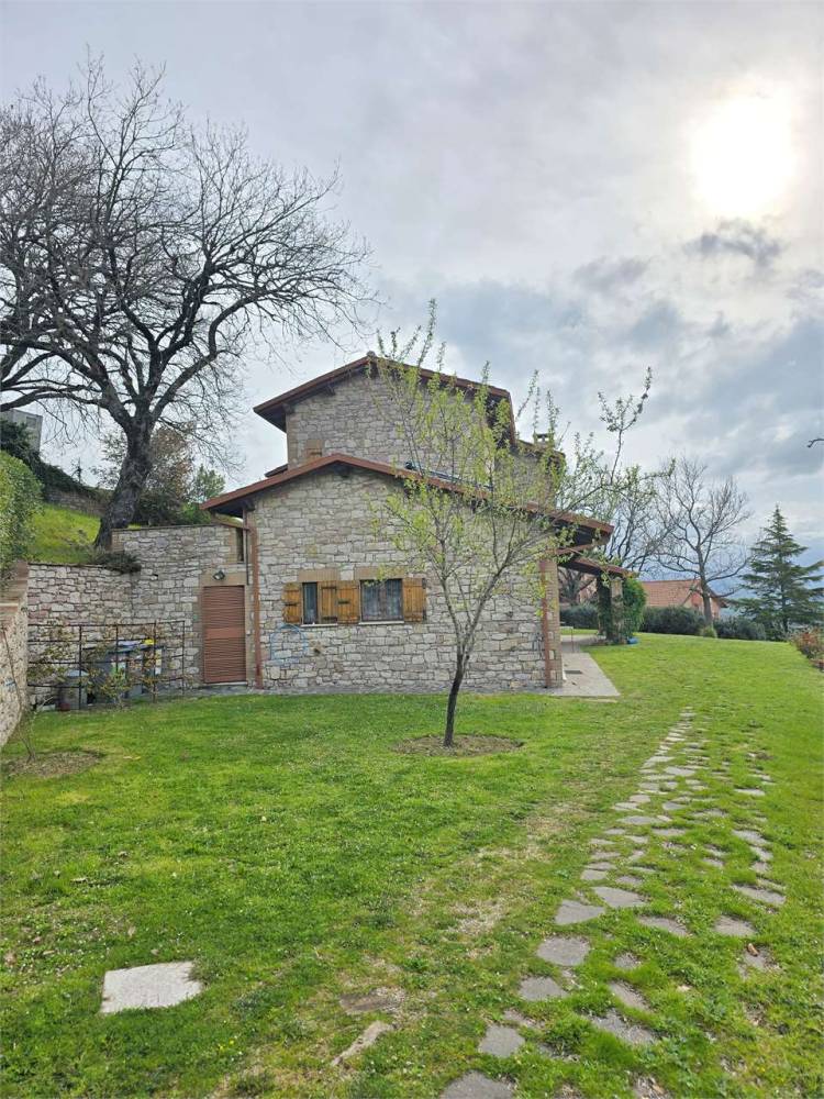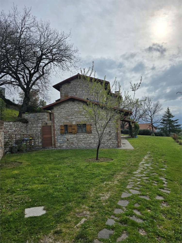 In posizione unica dominate su tutta la vallata Sud da Assisi a Perugia, casale/villa in Pietra su 2 livelli oltre appartamento/studio con bagno e soppalco, ulteriore vano con Servizio e garage doppio e terreno di pertinenza di circa mq. 2000 con piante di olivi e terrazzamenti con altri alberi ed un picccolo orto. La proprietà principale è composta da ampio ingresso, salone doppio con camino, cucina abitabile, bagno, ripostiglio, ampi portici. Al piano 1° troviamo 3 ampie camere, bagno, ampio disimpegno, balconi e terrazzi, accessi alla soffitta sovrastante. Tutto in perfette condizioni.Fotovoltaico e Pannelli solari. Da amatori. Solo referenziati e seriamente intenzionati all'acquisto. Libero a 4 mesi dal compromesso.