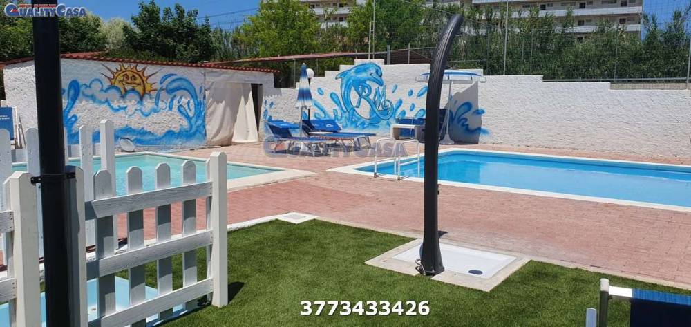 All'ingresso troviamo locale bar con ampia tettoia di 200 m² e reception, 2 piscine rispettivamente di 56 m² e 20 m² con due docce solari e ampio solarium con prato sintetico di pregio per lettini e ombrelloni. Le piazzole autorizzate sono 78 ma possono essere aumentate e 19 colonnine di erogazione energia elettrica con 6/8 attacchi ogni colonnina.