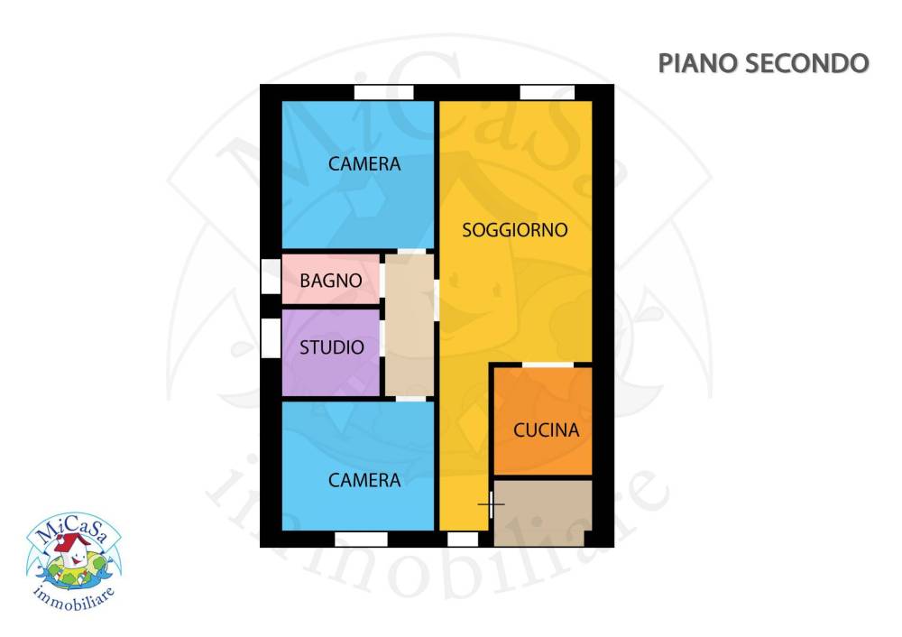 Composto da ingresso, cucina semiabitabile, soggiorno, tre camere (matrimoniale, doppia e singola) e bagno finestrato.