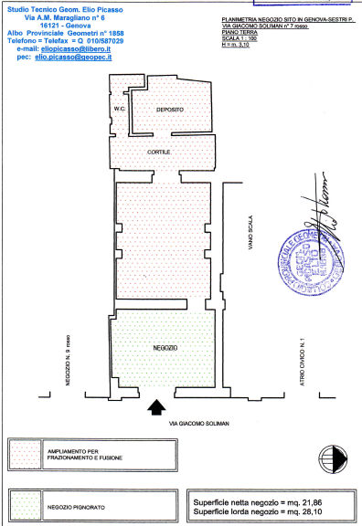 Intera piena proprietà del locale commerciale segnato con il numero 7 R (sette rosso) di Via Soliman nella delegazione di Sestri Ponente.L'unità immobiliare è composta da un unico locale di forma rettangolare ubicato al piano terreno.