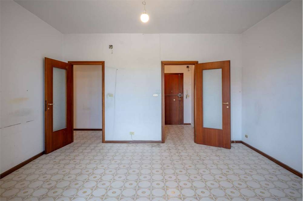 L'ingresso ci conduce al salone, tre camere (di cui una adibita a cucina), bagno, servizio, due ampi balconi, posto auto coperto in piano pilotis.