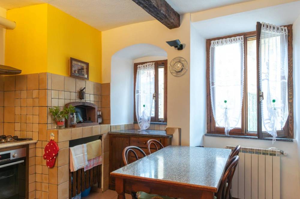 Al piano primo, sono disposti l' ampio soggiorno, una cucina abitabile completamante attrezzata e dotata di forno a legna, una camera da letto ed un bagno. Al secondo ed ultimo piano troviamo un salottino, una camera padronale con caminetto, terrazzo con affaccio panoramico e bagno privato.