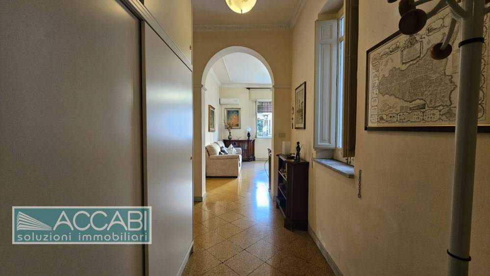 L'appartamentino di 100 mq catastali, molto funzionale nel suo insieme, è così composto: Ingresso su disimpegno, Cucina non abitabile, 4 vani tre dei quali con esposizione su balcone, Servizio con vasca, I balconi hanno esposizione sia sul prospetto principale che nel retro prospetto.