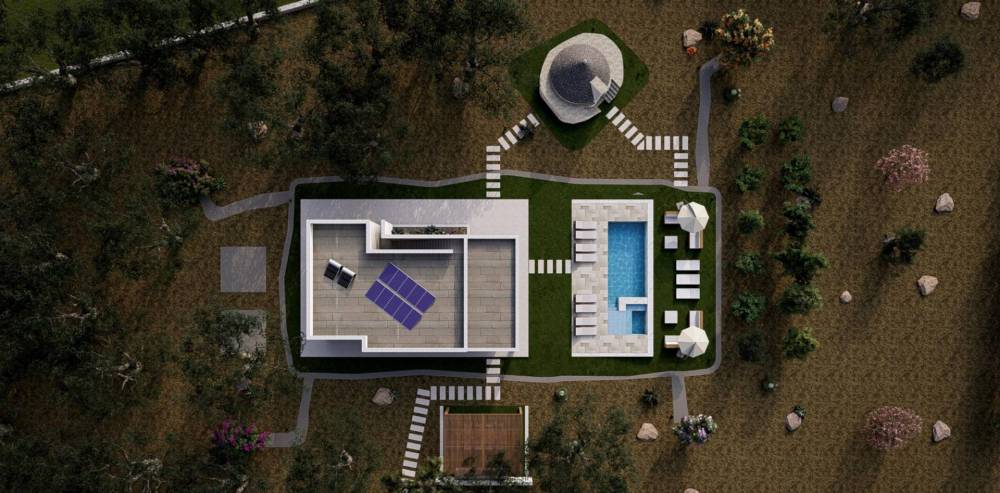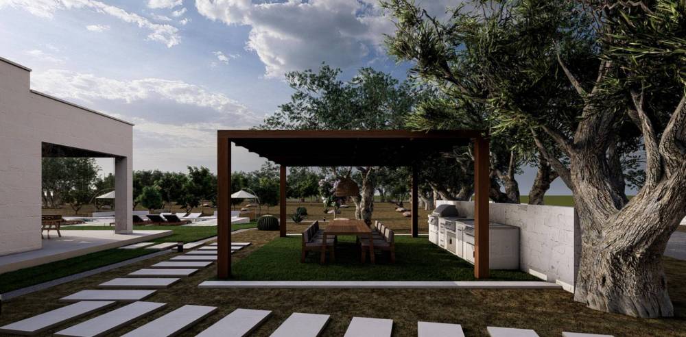 Gli esterni sono un vero valore aggiunto: un terreno privato di circa 9.300 mq avvolge la villa creando unoasi esclusiva di relax e natura. Il porticato di 30 mq offre uno spazio riparato ideale per pranzi e cene allaperto, mentre la piscina di 40 mq diventa il fulcro della vita estiva. Una suggestiva zona pranzo esterna con angolo cottura e barbecue consente di vivere appieno lesperienza mediterranea, tra convivialità e momenti di piacevole serenità. Nel giardino è presente anche un trullo tradizionale, da trasformare in un caratteristico angolo bar a servizio della piscina, un dettaglio unico che dona autenticità e charme alla proprietà.