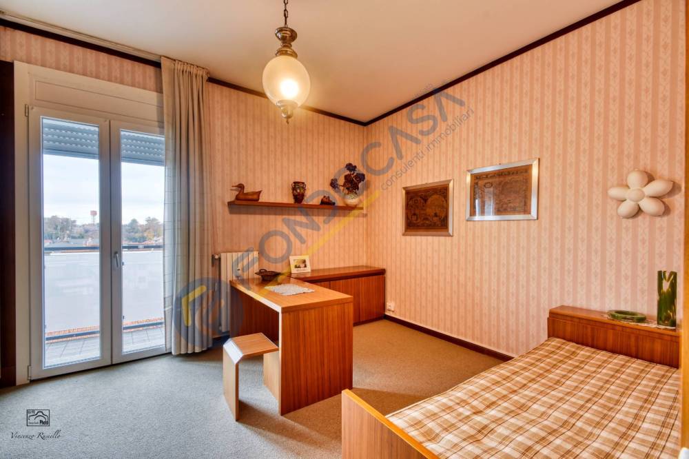 CARATTERISTICHE Sita al quinto piano in uno stabile dotato di ascensore, questa soluzione è composta da spazioso ingresso, soggiorno doppio con accesso a entrambi i balconi della casa, cucina abitabile con secondo accesso a uno dei due balconi, una prima camera con accesso al secondo balcone, camera matrimoniale con cabina armadio, disimpegno e bagno finestrato con doccia e vasca! Le dimensioni generose del soggiorno permettono di creare una terza camera da letto e ottenere facilmente un quadrilocale. Le condizioni interne sono buone: gli infissi sono in PVC con doppio vetro e ribalta, in tutta la soluzione è presente la moquette, ad eccezione di cucina e bagno dove si trova la ceramica. Il riscaldamento è centralizzato con termovalvole, l'importo delle spese comprende tutte le spese generiche e fisse ad eccezione della quota del riscaldamento a consumo. E' presente l'impianto di aria condizionata. L'appartamento ha tripla esposizione EST, SUD e OVEST. Completano la proprietà la cantina e il box singolo di 12 mq.