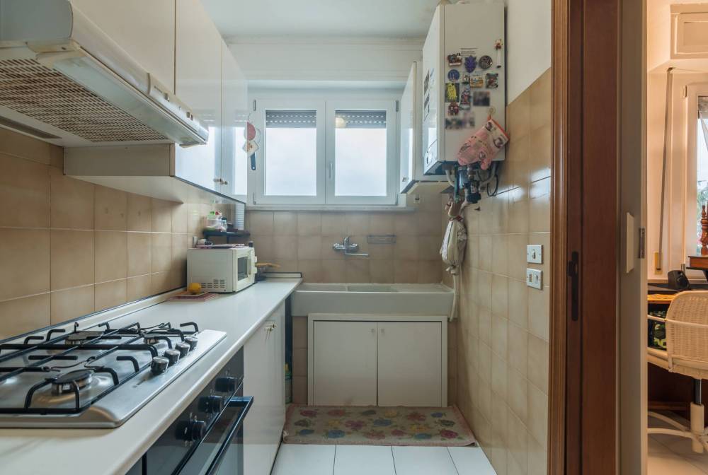 L’angolo cottura è funzionale e ben integrato nell’ambiente giorno. Dal soggiorno è possibile accedere direttamente al balcone, ideale per creare un angolo relax all'aperto o per godere di un piacevole affaccio esterno.
