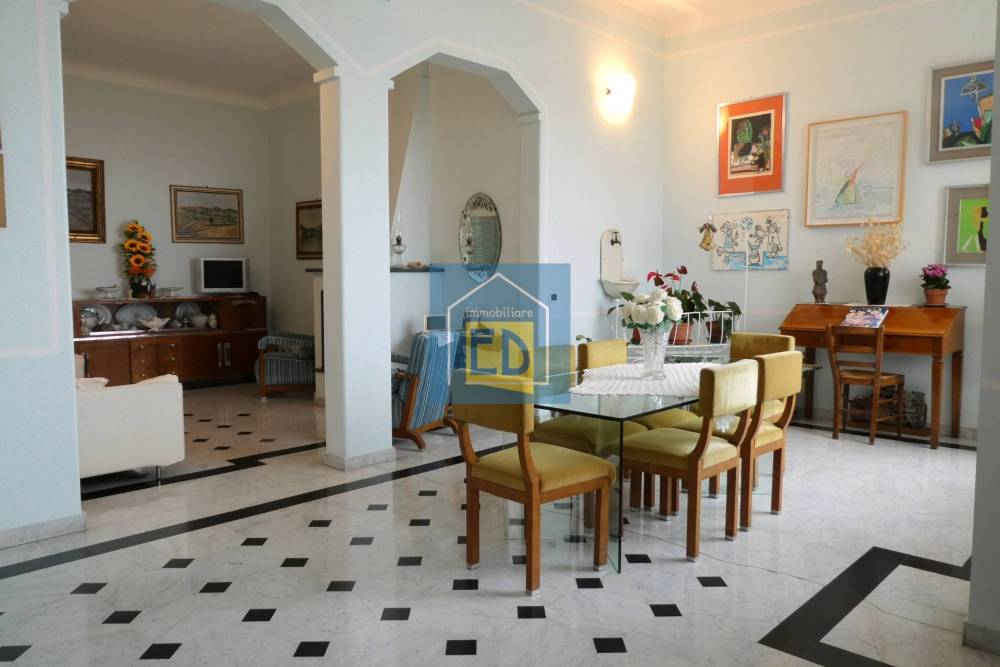 INTERNO: mq. 148 catastali. L'appartamento, caratterizzato da uno stile classico, presenta in zona giorno pavimenti in marmo con decori, in zona notte graniglia con disegni artistici e alti soffitti a conferire un'eleganza unica. L'appartamento offre due ampie zone soggiorno, ideali sia come salotto che come zona pranzo, entrambe con uno splendido affaccio sul mare e vista panoramica sul Golfo. La cucina parzialmente abitabile e posizionata in modo baricentrico offre grande praticità di utilizzo.