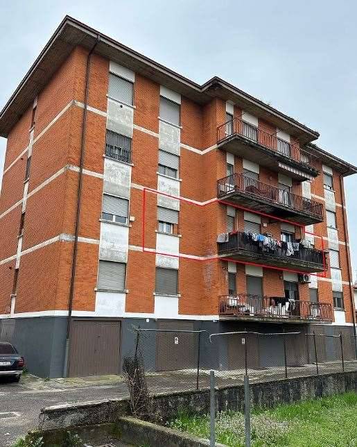 Appartamento posto al secondo piano in un edificio condominiale, dotato di ascensore, ubicato nel comune di Ghisalba (BG) in Via Al Ponte. L'alloggio è composto da ingresso, cucina, soggiorno, disimpegno, un bagno, due camere e balcone. Per completare l'immobile troviamo una cantina al piano interrato ed un'autorimessa singola al piano terra.