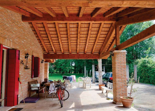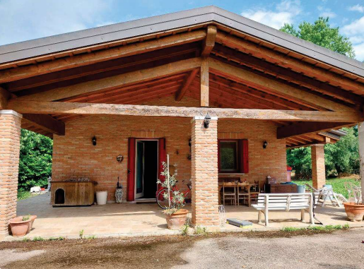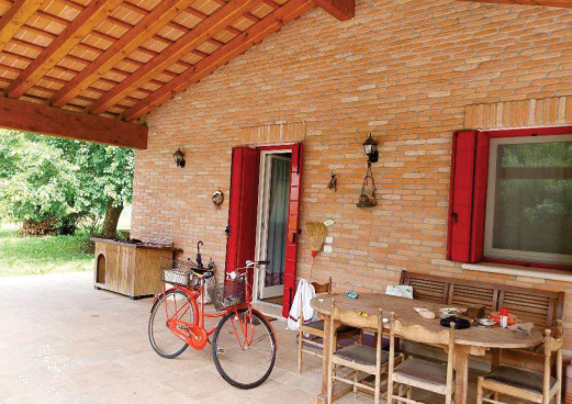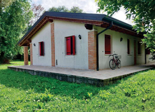 L'unità è disposta su un unico piano ed ha un ampio portico dal quale si accede alla zona giorno costituita da un ampio soggiorno aperto sulla zona cucina pranzo, la zona notte e servizi è separata, accessibile da un