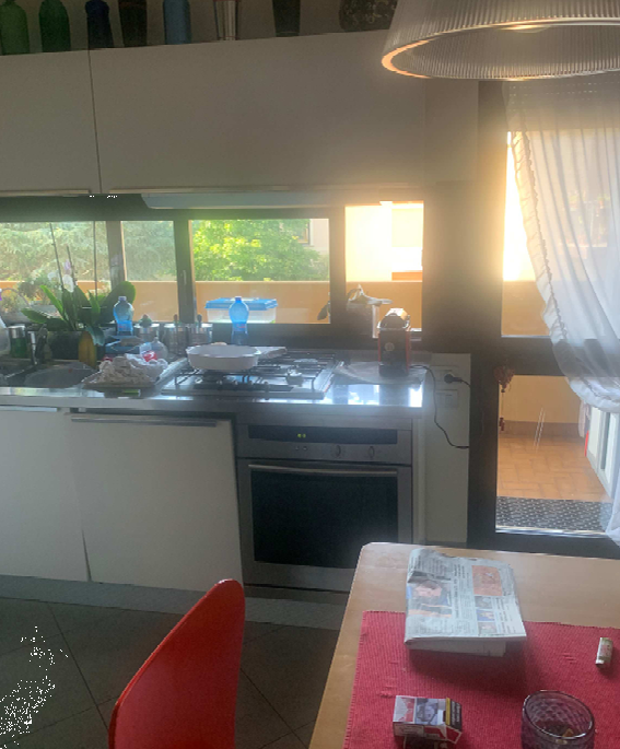 Appartamento al primo piano situato a Bologna (BO), l'esposizione è su tutti e 4 i lati del condominio, con una cantina interrata privata. All'interno è costituito da: un ingresso, un soggiorno con terrazzo, una zona pranzo, una cucina con terrazzo, due bagni e tre camere da letto di cui una con terrazzo.