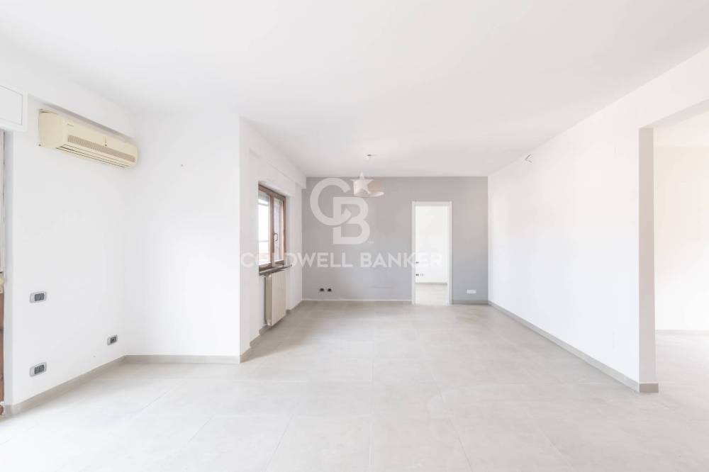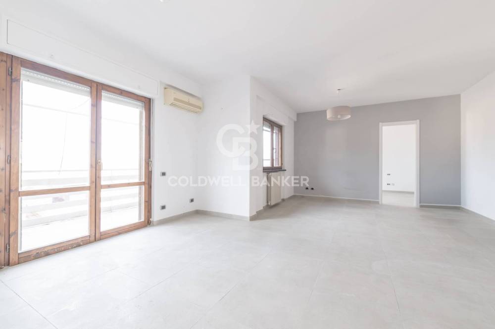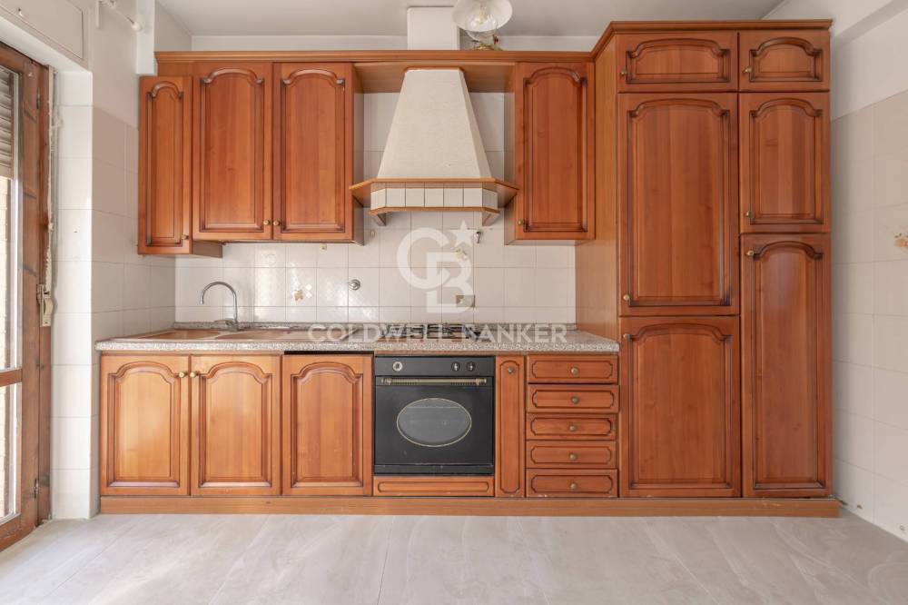 L’appartamento si presenta con un ampio salone che offre accesso diretto al terrazzo, una cucina abitabile collegata a un balcone, due camere da letto e un bagno dotato di doccia e finestra. La generosa metratura consente di rimodulare gli ambienti e di realizzare, qualora lo si desideri, una terza camera da letto e un secondo bagno.