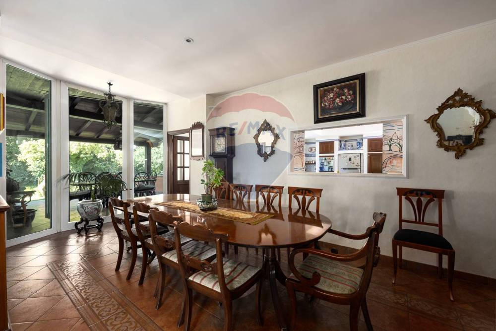 L'immobile presenta un doppio ingresso e ha una metratura interna di circa 300 mq distribuiti su due livelli, completata da un giardino con bosco di proprietà e un' ampia veranda con accesso diretto ad esso.