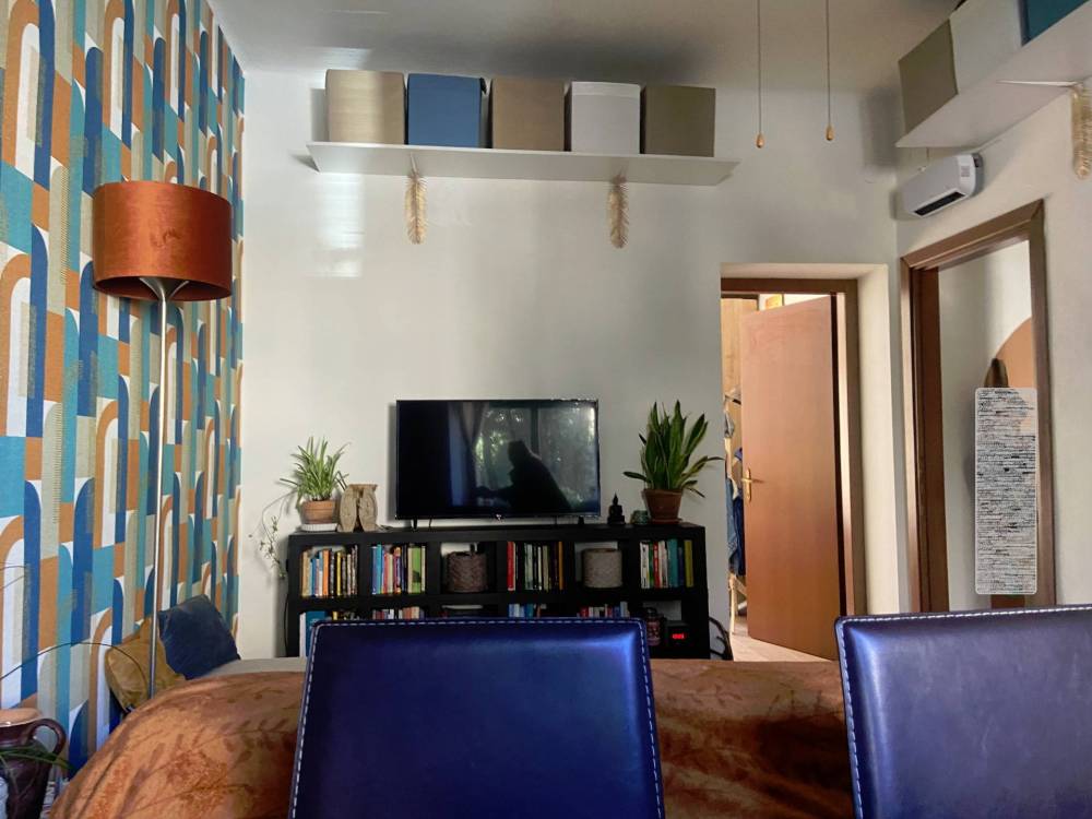 Trilocale, posto al piano primo, 2 ampi vani, cucina abitabile e servizio con finestra e doccia.