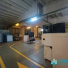 Il piano primo accoglie un magazzino di 190 mq con un appartamento di 95 mq; il piano seminterrato ospita un secondo magazzino di 195 mq con spogliatoi e bagni per un complessivo di 155 mq .