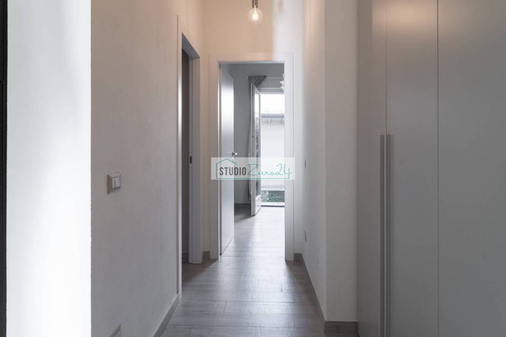 La zona giorno si apre in un ampio living con cucina a vista, progettato per unire funzionalità e stile contemporaneo. La zona notte comprende due camere da letto comode e ben rifinite, oltre a un bagno elegante caratterizzato da materiali di qualità. Uno dei principali punti di forza dellimmobile è la splendida terrazza vivibile, perfetta per pranzi allaperto e momenti di relax. A completare la proprietà trova spazio un giardino privato, dotato di un pratico ripostiglio esterno, ideale per ricoverare attrezzature o biciclette.