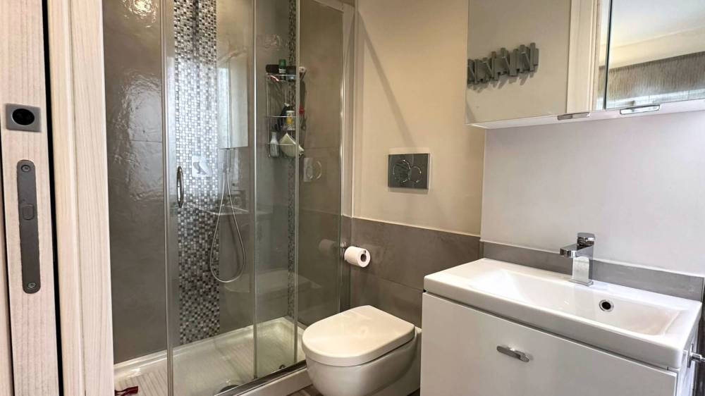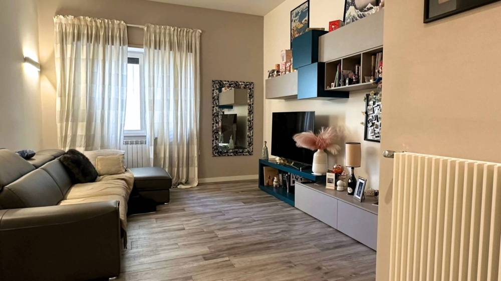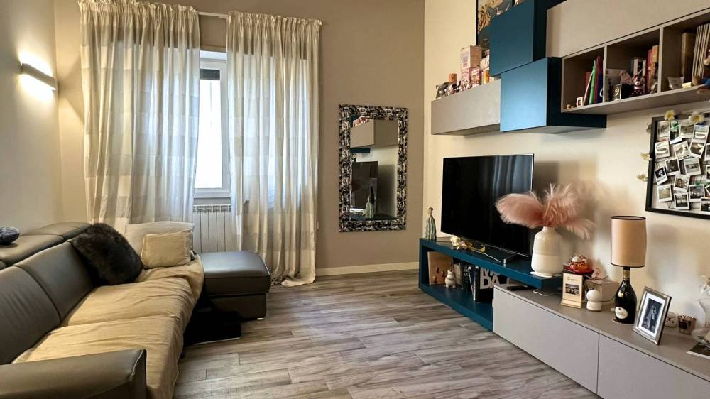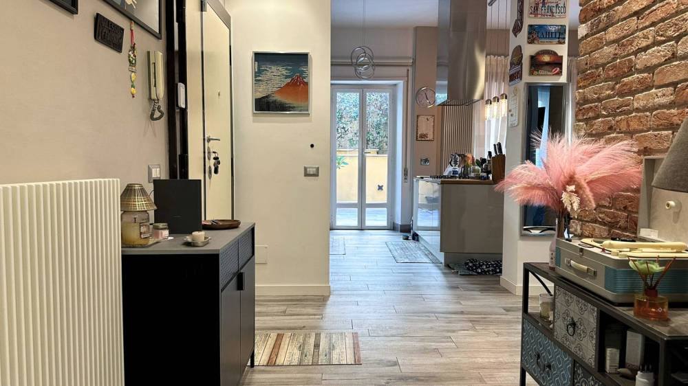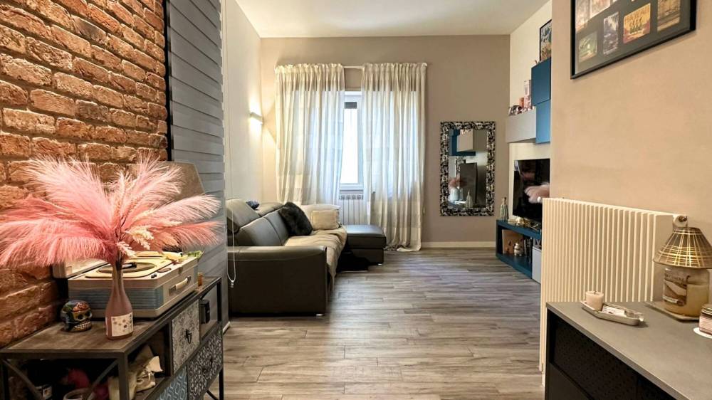 Proponiamo in vendita un trilocale ristrutturato con giardino terrazzato e finiture di pregio. In contesto riservato e tranquillo, proponiamo in vendita un raffinato trilocale di circa 100 mq, completamente ristrutturato con materiali di alta qualità e cura nei dettagli. Labitazione si apre su un accogliente soggiorno e una moderna cucina con isola centrale, affacciata su unampia zona pranzo caratterizzata da un elegante rivestimento in mattoncini di geopietra, che dona calore e personalità agli ambienti. Attualmente limmobile dispone di una sola camera da letto matrimoniale, ampia e luminosa, completa di cabina armadio e bagno en suite finestrato. È comunque possibile ripristinare con facilità la seconda camera, rendendo lappartamento adatto anche a famiglie o a chi necessita di uno spazio aggiuntivo. A servizio dellabitazione è presente un secondo bagno, anchesso finestrato, accessibile dalla zona giorno. Esternamente, la proprietà è impreziosita da un ampio giardino terrazzato, ideale per momenti di relax e convivialità, dove trova spazio anche una comoda rimessa esterna, utile per il rimessaggio di attrezzi, biciclette o arredi da esterno. L'immobile è dotato di impianto di riscaldamento autonomo con radiatori Cordivari e climatizzatore Daikin 12000 BTU caldo/freddo, per garantire il massimo comfort in ogni stagione. Soluzione pronta da abitare, perfetta per chi cerca ambienti moderni, funzionali e con spazi esterni ben fruibili.