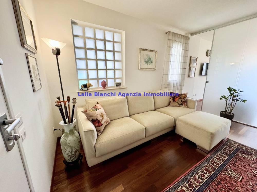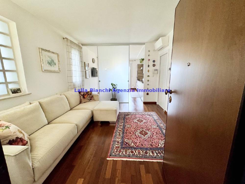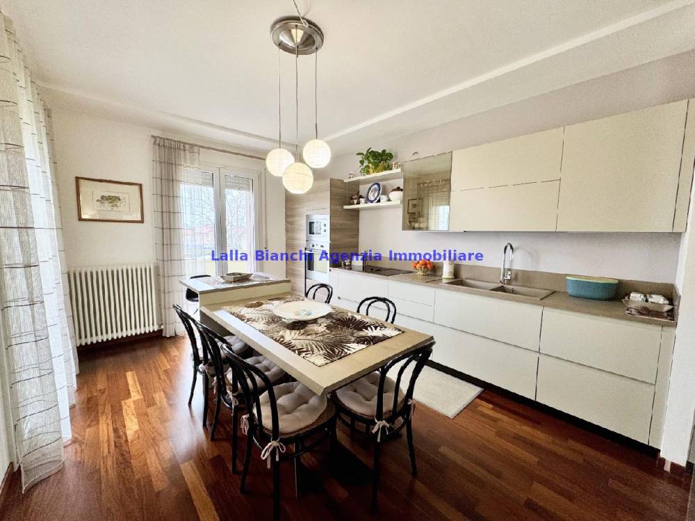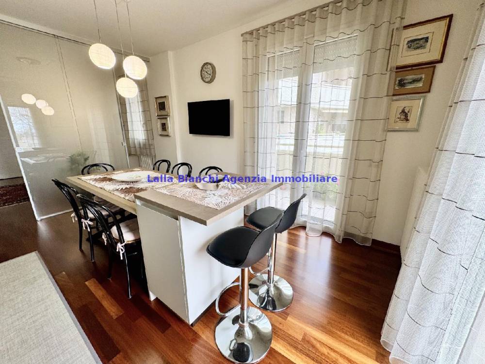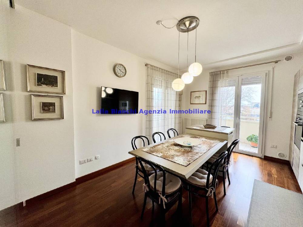 PESARO (PU) / BAIA FLAMINIA: COD. RIF. V. 9199 - L'AGENZIA IMMOBILIARE LALLA BIANCHI propone in VENDITA un elegante Appartamento semi nuovo con due terrazzi al Piano Secondo e un Garage esclusivo al Piano Interrato, all'interno di un recente e signorile piccolo condominio dotato di ascensore. L'abitazione di tipo civile situata al secondo piano di una palazzina residenziale di poche unità, ha una Superficie catastale Totale di 99 m² così suddivisa: - Zona giorno: ingresso diretto su un luminoso soggiorno separato dall'ampia cucina pranzo "abitabile" tramite una raffinata parete a due ante scorrevoli in vetro, da cui si accede ad un ampio terrazzo ideale per pranzi all'aperto. - Zona notte: un disimpegno che accompagna ad un bagno spazioso e finestrato con accesso esclusivo al secondo terrazzo, a due ampie camere da letto e ad una terza stanza attualmente adibita a lavanderia (e comoda dispensa). Completa la proprietà un comodo Garage di Superficie catastale Totale di 22 m² al Piano Interrato, raggiungibile direttamente con l'ascensore a norma disabili (assenza di barriere architettoniche) locato in una zona condominiale ben curata, inclusi ingresso, vano scala e parti comuni. L'appartamento, ultimato e rifinito nel 2019, si presenta in condizioni impeccabili, perfettamente mantenuto e pronto per essere abitato senza necessità di lavori, le finiture interne sono di alto livello, con pavimenti in parquet nella zona giorno e nelle camere, la residenza è dotata di video-citofon