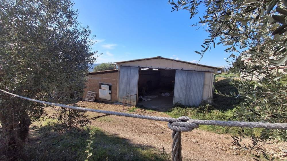 Sulla proprietà insiste un casale di ca 400 mq su due livelli. Piano terra e' adibito a magazzini ed ex stalla. Al piano superiore troviamo l'abitazione molto ampia e luminosa composta da ingresso, grande soggiorno con camino, cucinotto, altra stanza adibita a soggiorno, tre grandi camere matrimoniali e bagno.