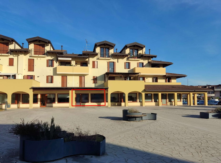 Trattasi di un negozio a della superficie commerciale di 67,25 mq al piano terra sito in un ampio edificio condominiale a destinazione mista denominato ''Condominio La Piazza di Plaino''.