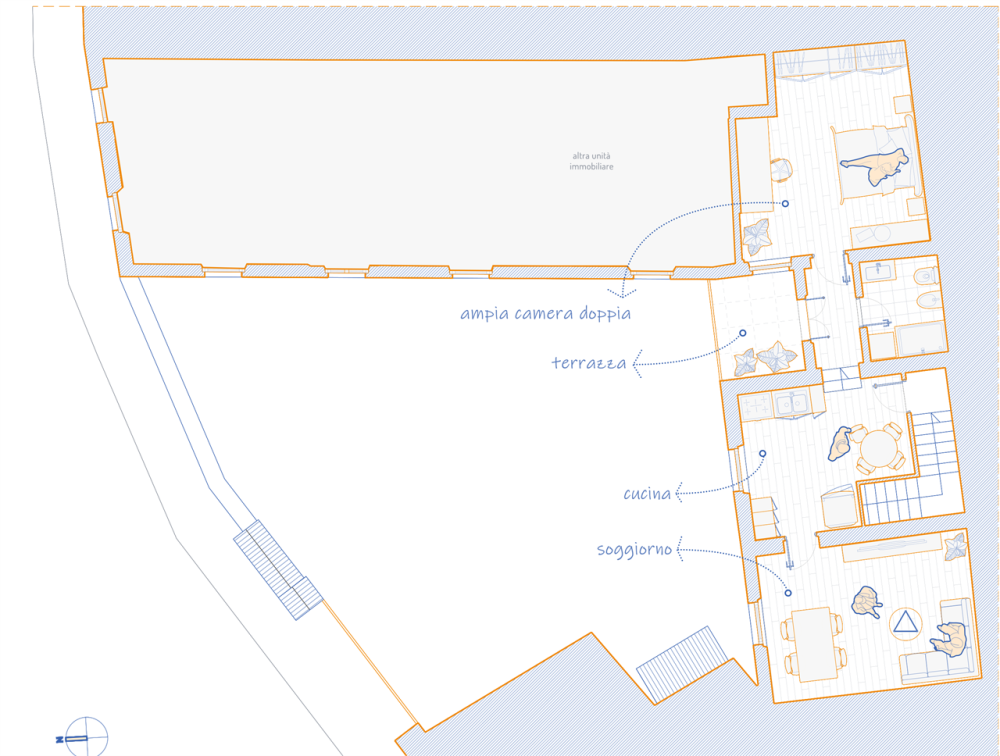 Dalla totale ristrutturazione di un'antica corte storica nasce questo appartamento al piano primo con ingresso indipendente, soggiorno, cucina, camera matrimoniale e bagno