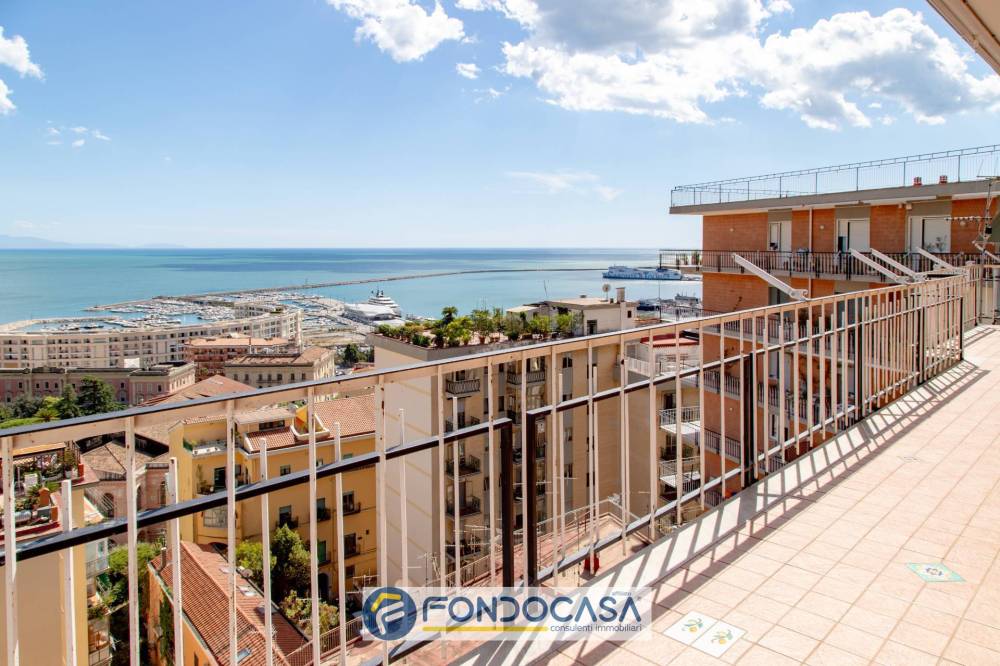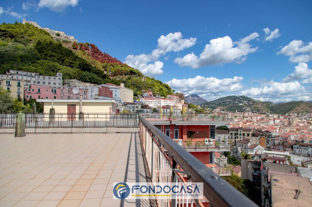 Inoltre, il terrazzo di circa 130mq offre un'atmosfera unica e la possibilità di godere di splendide serate all'aperto con vista mozzafiato sul teatro verdi , la stazione Marittima e il meraviglioso Golfo di Salerno.