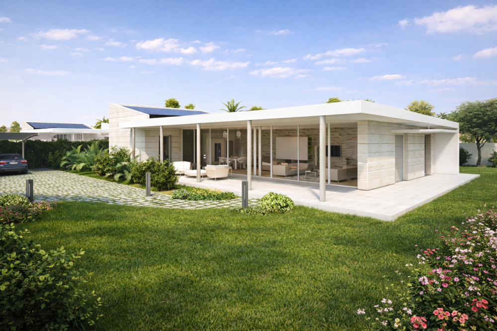 GRIMALDI STORE LECCE Vico dei Fieschi 16, 73100 Lecce In vendita in esclusiva, proponiamo una Smart Villa unifamiliare allo stato di rustico, situata all’interno del “Lecce Smart Village Donna Elisa”, un complesso residenziale innovativo e sostenibile ubicato in una traversa di Viale Grassi. Il progetto del “Donna Elisa” nasce da una visione urbanistica moderna, orientata all’ecosostenibilità e alla qualità della vita, con particolare attenzione al risparmio energetico, alla sicurezza e al rispetto dell’ambiente. L’intero complesso è immerso in un’ampia area verde privata, arricchita da muri a secco e vegetazione mediterranea, e servita da percorsi dedicati alla mobilità pedonale e ciclabile. La posizione risulta strategica: a pochi minuti dal centro cittadino e nelle vicinanze di importanti servizi come l’Ospedale “Vito Fazzi” e il Polo Scientifico dell’Università del Salento. La villa si sviluppa su un unico livello e offre una superficie commerciale di circa 230 mq, posizionata su un lotto privato di circa 1.200 mq. L’architettura contemporanea, caratterizzata da linee pulite e ampie vetrate, favorisce una forte interazione tra interni ed esterni. Attualmente si presenta allo stato di rustico, con soli solai, massetti e pilastri già realizzati, offrendo così un’ampia libertà di personalizzazione degli spazi: è possibile progettare un grande salone con affaccio panoramico, una cucina abitabile con area lavanderia, tre camere da letto eventualmente dotabili di cabina armadio, uno studio, una palestra, doppi servizi e posti auto privati. La proprietà dispone inoltre di permesso di costruire per la piscina, un valore aggiunto che consente di completare l’abitazione con un ulteriore elemento di comfort ed esclusività. Ogni Smart Villa del complesso è stata concepita per offrire un elevato livello di efficienza abitativa: murature coibentate, infissi performanti, impianto di riscaldamento a pavimento, raffrescamento tramite pompa di calore e predisposizione per impianto fotovoltaico, pannelli solari e sistemi avanzati di sicurezza e videosorveglianza. È presente anche una piccola isola ecologica privata dedicata allo smaltimento dei rifiuti. Situato nella zona Ovest di Lecce, il “Lecce Smart Village Donna Elisa” si colloca accanto a una vasta area boschiva e a breve distanza dalla nuova Chiesa di San Pio da Pietrelcina, in un contesto caratterizzato da una crescente potenzialità di sviluppo commerciale e direzionale. Una soluzione ideale per chi desidera una residenza moderna, efficiente, sostenibile e al contempo altamente personalizzabile, inserita in un contesto di prestigio. NB: si prega di considerare che il prezzo indicato si riferisce allo stato di rustico e non alla villa ultimata. GRIMALDI STORE LECCE 0832 1902429 / 393 9035134 info@grimaldistorelecce.it