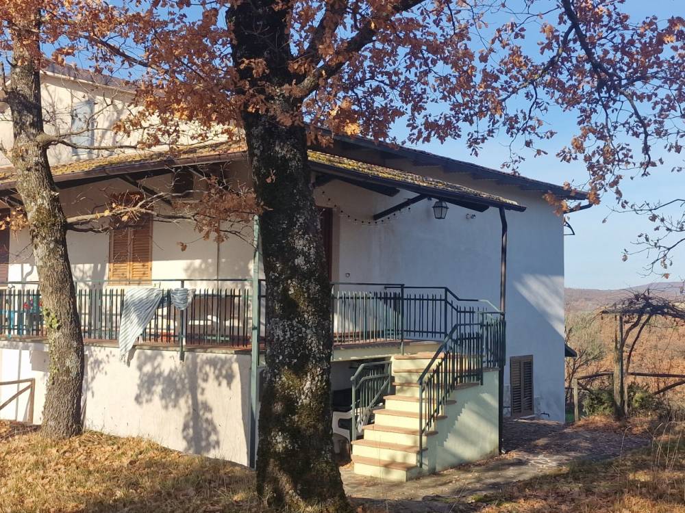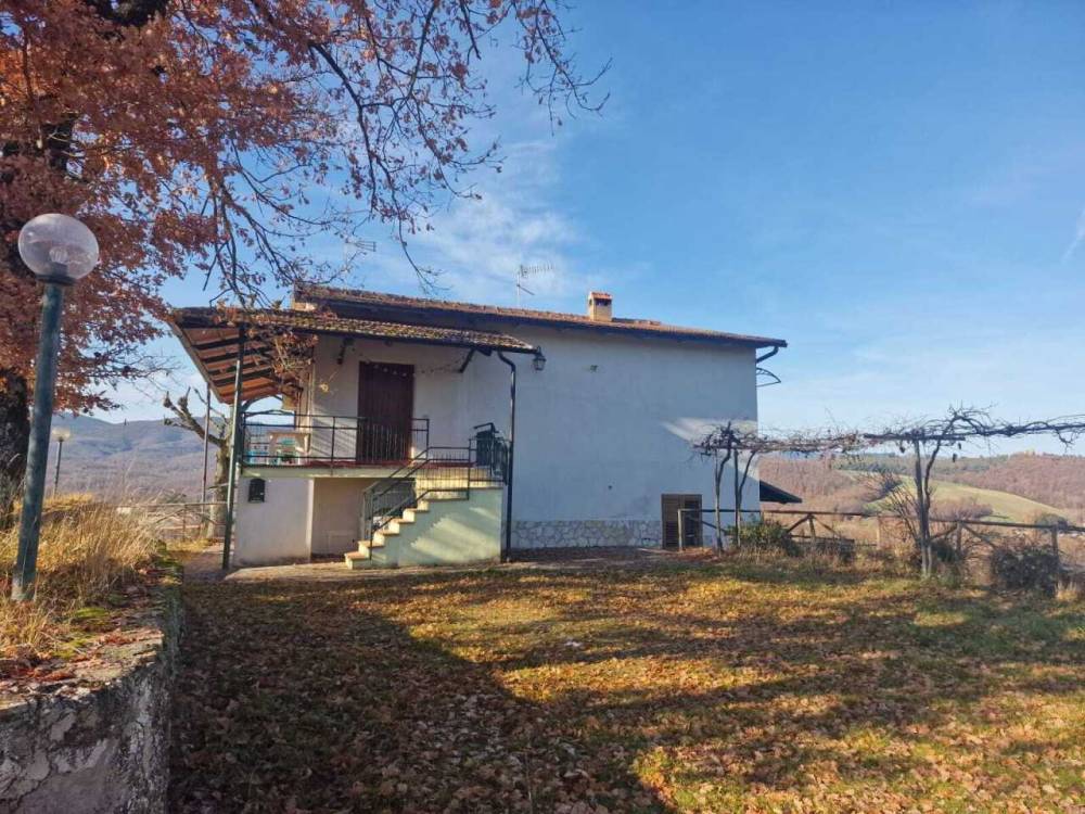 In posizione dominante, circondata dal verde dell' Umbria e libera su tre lati, proponiamo in vendita villetta bifamiliare di 120 mq in buone condizioni, perfetta per prima abitazione o come residenza di campagna. Il terreno agricolo di circa 1.6 ettari circonda la proprietà garantendo privacy e uno scenario unico, ideale per chi sogna di vivere immerso nella natura senza rinunciare, visto la vicinanza, dei servizi. Caratteristiche principali: * Piano terra: ampio salone con camino cucina a vista, bagno e una piccola stanza singola per ospiti o studio. * Piano primo collegato da scala interna in legno: camera matrimoniale con affaccio panoramico, bagno e confortevole soggiorno. * Sono presenti sia scale interne che esterne per un accesso comodo e indipendente dei due livelli. * La casa è ristrutturata e mobiliata. All’esterno la proprietà offre: * Terreno agricolo seminativo con qualche albero da frutta e olivi. * Terrazza panoramica davanti l’ingresso principale, ideale per momenti di relax con vista sulle colline umbre e anche sul paese di Castel dell’Aquila * Ampio parcheggio auto * La strada è privata fino alla casa * Magazzino per deposito attrezzi * Possibilità di ampliamento edilizio personalizzando la casa Un’occasione rara per chi desidera acquistare una proprietà con panorama mozzafiato nel cuore dell’Umbria e per chi vuole realizzare il sogno di allontanarsi dalla grande città per trovare invece spazi tranquilli e rilassanti. Contattaci subito per maggior informazioni o fissare una visita!