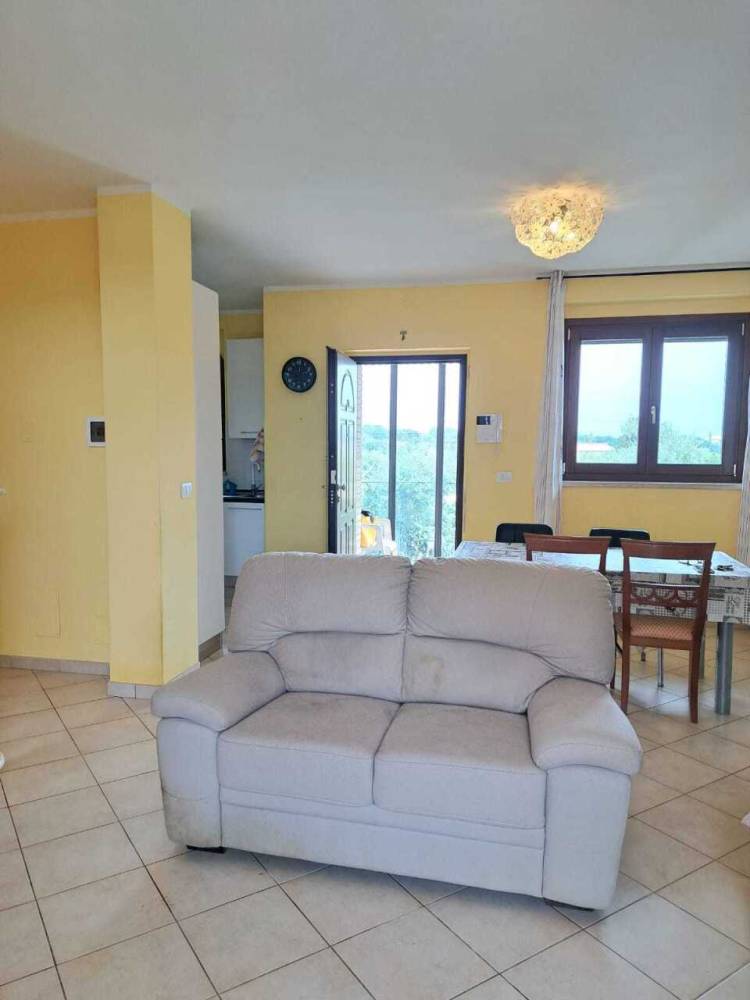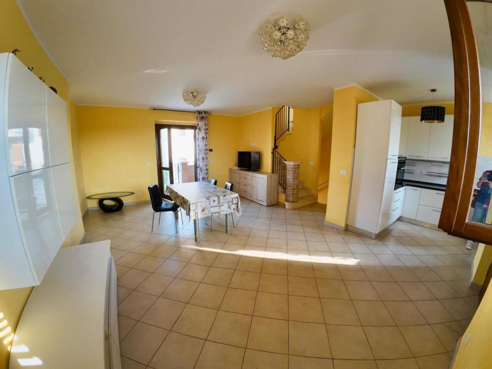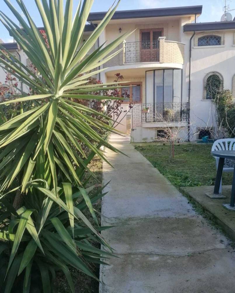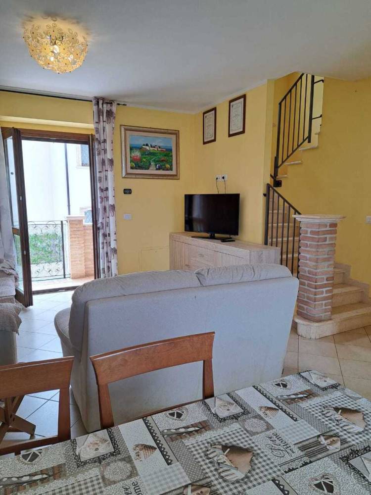 VENDESI in SANTA MARIA IMBARO, graziosa VILLETTA A SCHIERA terra-tetto, con vista mare-monti, del 2014, di circa 110 mq.interni totali, oltre GIARDINO (dotato di predisposizione per irrigazione da pozzo condominiale) e GARAGE, semi ARREDATA e RECINTATA, con doppio ingresso autonomo, disposta su 3 piani di circa 38 mq.cadauno: - piano rialzato (a cui si accede dal cancelletto antistante il giardino esclusivo) composto da; cucina doppio angolo/sala open space con accesso sul balcone e predisposizione per un bagno; - primo piano composto da 2 camere da letto (di cui una matrimoniale e una singola) e 1 bagno con doccia e balconi; - piano terra composto da ampio vano utilizzabile come TAVERNA e/o GARAGE (di 40 mq.), oltre vano ripostiglio e un bagno con doccia. Dotato di: porta blindata, pannello fotovoltaico, videocitofono a colori, riscaldamento a pavimento, finestre in pvc (doppio vetro e antisfondamento) con vetri insonorizzati, zanzariere alle finestre, citofono ad ogni piano (intercomunicante tra gli stessi anche), alcune finestre dotate anche di grate, predisposizione per autoclave e condizionatori, predisposizione per caminetto (canna fumaria presente, senza comignolo), caloriferi presenti nei bagni e lungo le scale, battiscopa in ceramica, vetro di protezione intemperie posto davanti all'uscio di casa, cancello e passamani scale interne, in ferro battuto: predisposizione per lavatrice in entrambi i bagni e cavo antenna presente in tutte le stanze. Classe energetica C. Inoltre vi sono anche 2 POSTI AUTO assegnati recintati. Spese condominiali di circa €30 per mese. Ideale per una coppia. DISPONIBILE DA SUBITO. Prezzo richiesto € 180.000,00 trattabile. VERO AFFARE!