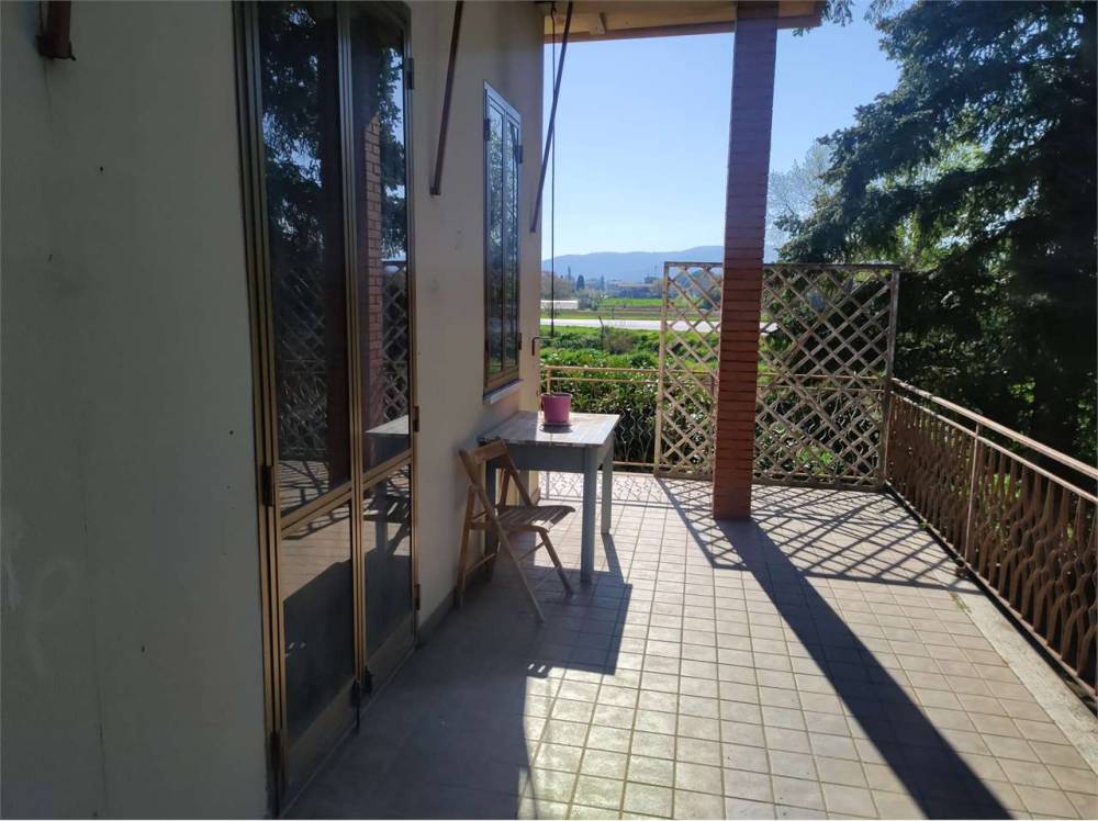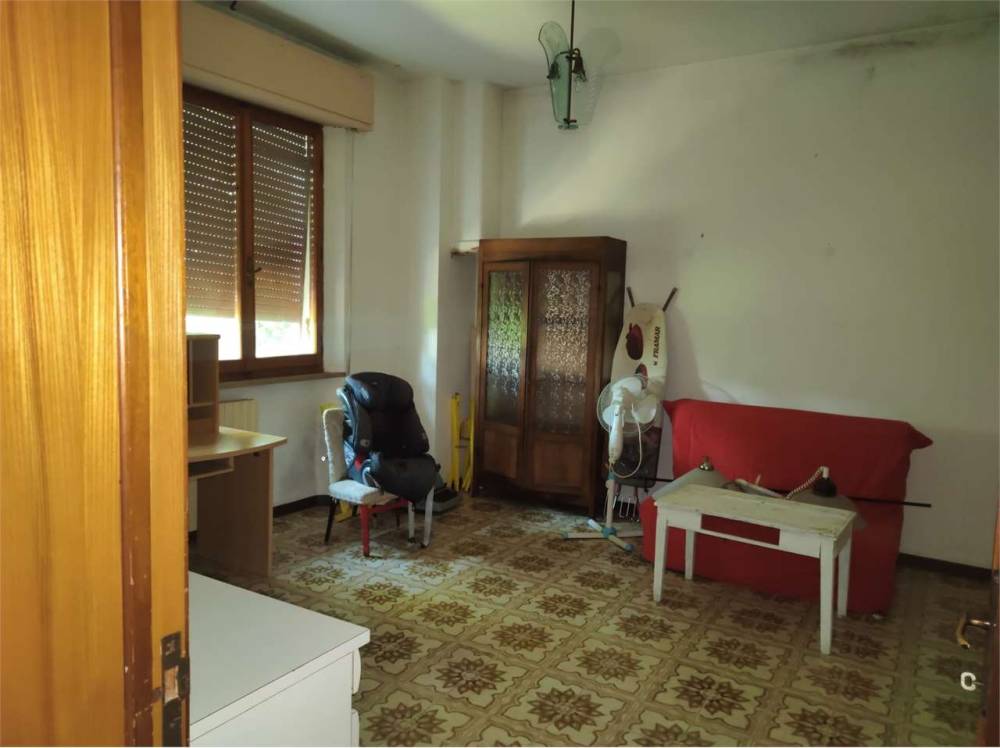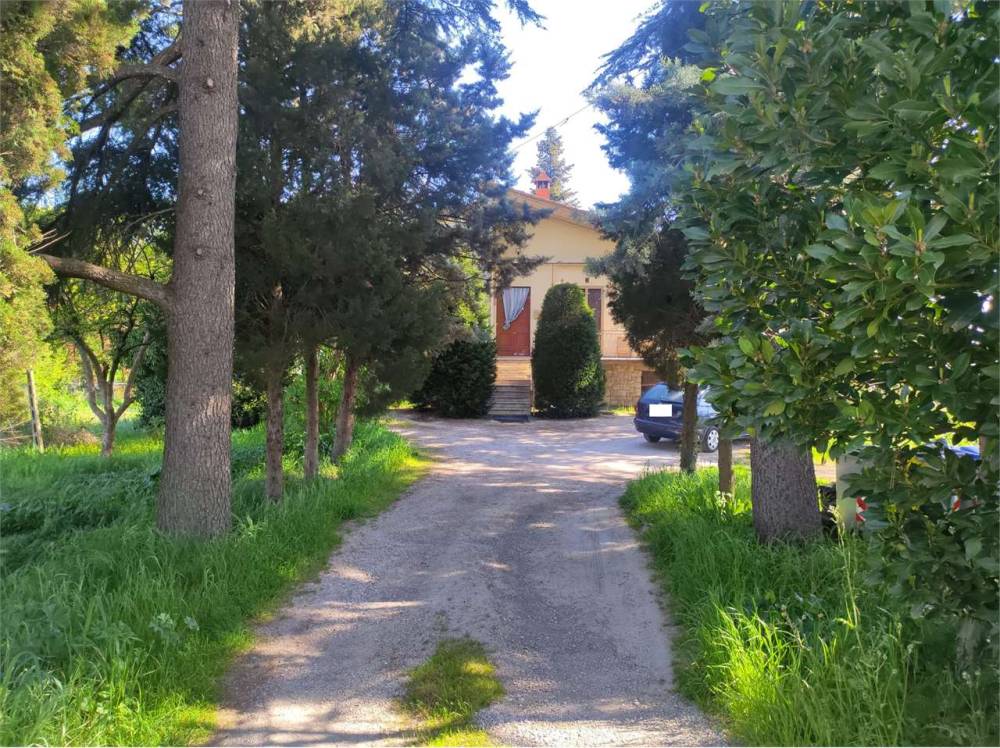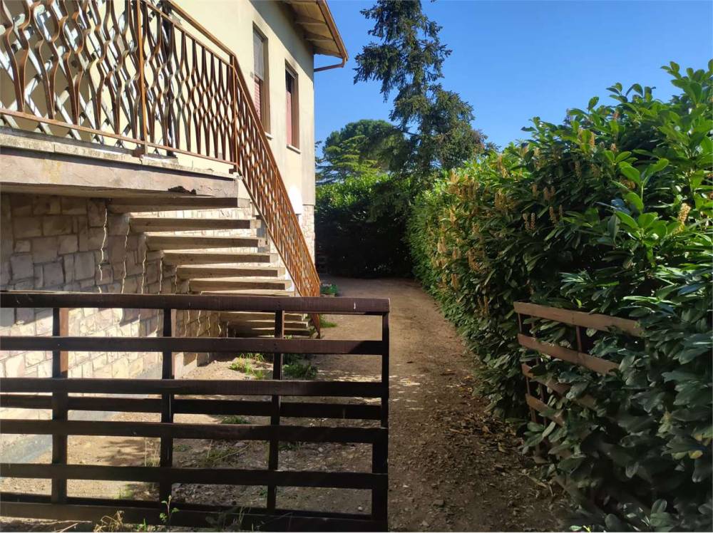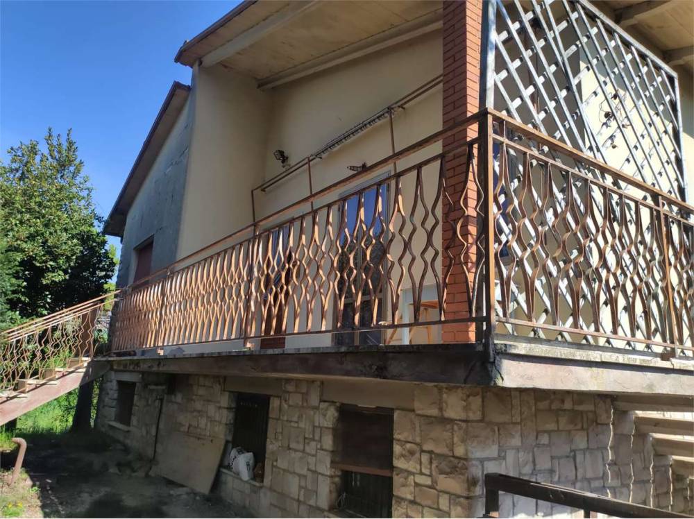 Villetta unifamiliare composta da appartamento al piano primo rialzato con ingresso, cucinino con finestra, sala pranzo, soggiorno, tre camere da letto, bagno con finestra e grande terrazzo abitabile; al piano seminterrato, rustico, camera, bagno, garage e legnaia. completa la proprietà una soffitta semipraticabile con accesso da una botola e un terreno in parte con piante ad alto fusto e siepi ed in parte per le coltivazioni agricole, il terreno complessivamente è di circa 5.000 mq. La villetta è abitabile.